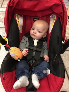Carson had his 6 month check up on Saturday morning. I took him while Miles stayed home with my mom. He weighed 16 1/2 lbs, which is up from a week ago, but I had just fed him.