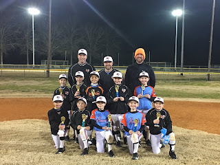It was pretty cold all day, but especially when we got there at 8am and then the last game of the night. We had several portable heaters, but the boys were so cold, so we sent them to the dug out to at least keep their hands warm.